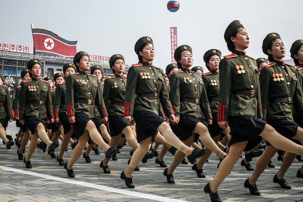 הצטופפנו, עיתונאים וצלמים, בכיכר קים איל-סונג בעוד עשרות-אלפי חיילים חולפים על פנינו בצעדים מתואמים, ואחריהם טנקים ומשאיות עם טילים בליסטיים, בסצינה שכאילו נשלפה מסרט של לני ריפנשטאל. מעלינו, על מרפסת, נופף קים ג'ונג-איל לעבר נתיניו הבוכיים. לצדו עמד יורש העוצר קים ג'ונג-און.