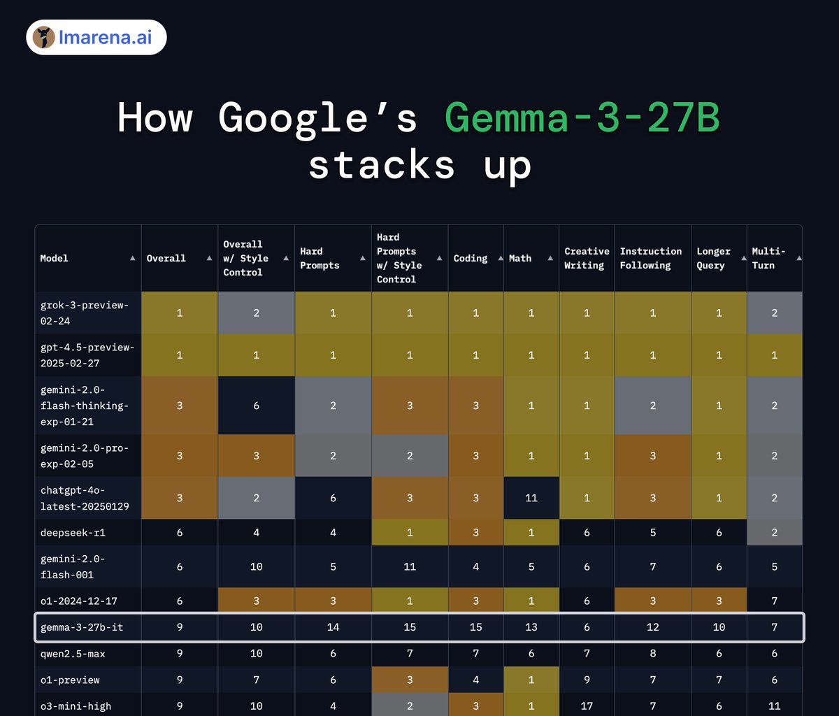 Gemini 2.5 Pro #1 across ALL categories, tied #1 with Grok-3/GPT-4.5 for Hard Prompts and Coding, and edged out across all others to take the lead 🏇🏆