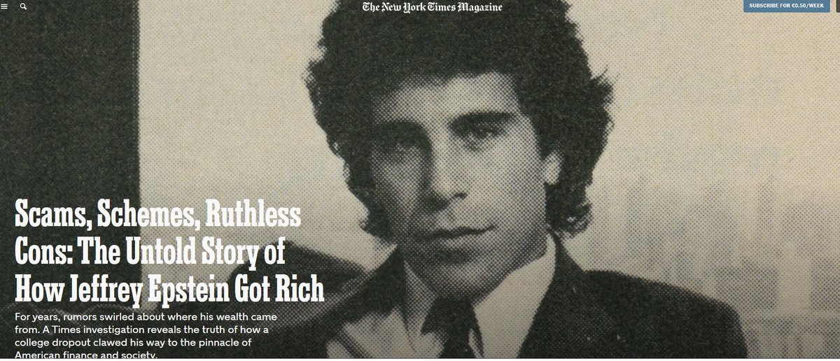 "Abundant conspiracy theories hold that Epstein worked for spy services or ran a lucrative blackmail operation, but we found a more prosaic explanation for how he built a fortune..🤔