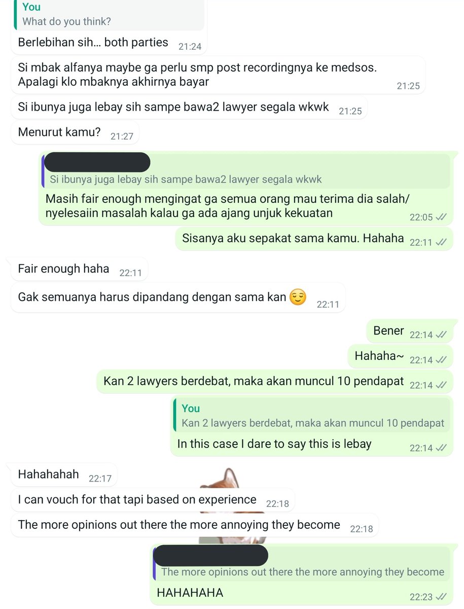 I. PENIPUAN (Jangka Pendek)https://twitter.com/catreonot/status/1609721536445050881Yang kaya lawyer artis yang jadiin konsultasi gratis jadi konten media sosial juga sebenernya ga bener. Muka kliennya diumbar, detail case-nya disebar. Harusnya tiap orang yang datang konsul udah otomatis jadi klien dan rahasianya dijaga baik-baik sama klien sesuai kode etik.