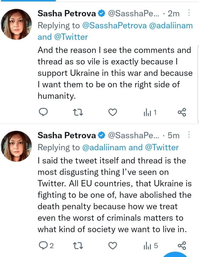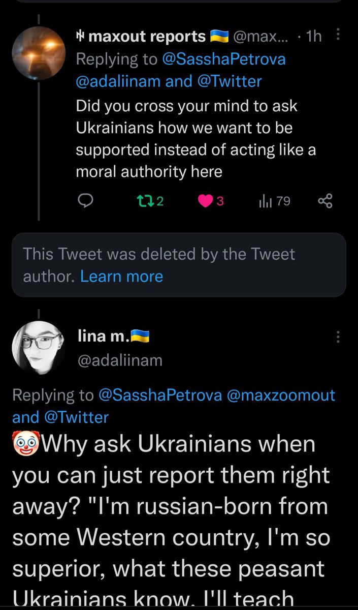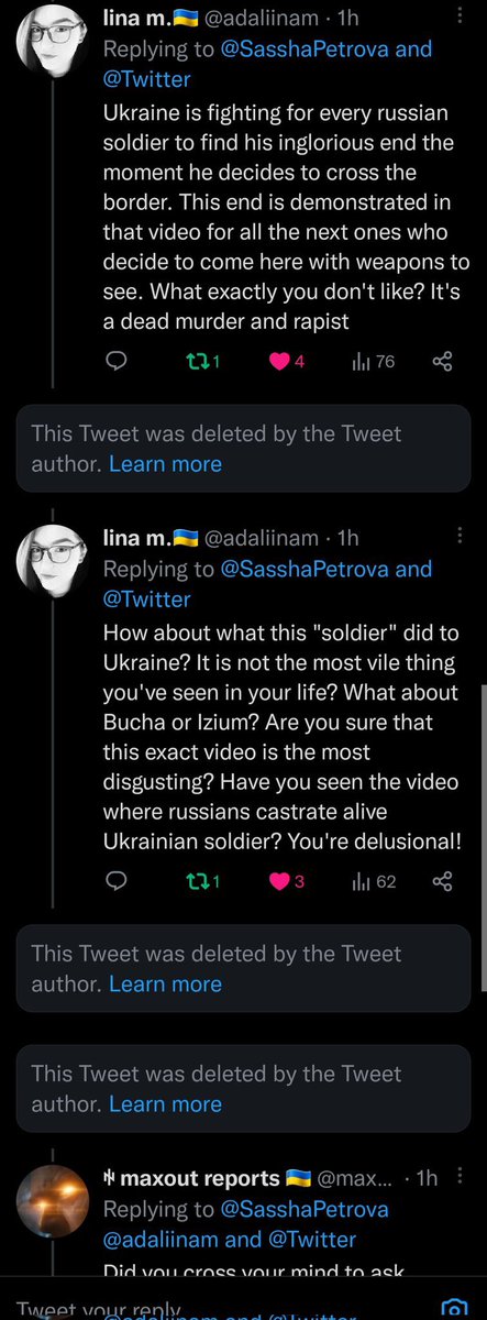 Here she was protecting those “poor guys who escaped to the west” yet deleted some tweets. She is NOT supporting Ukraine, she is a Russian asset.