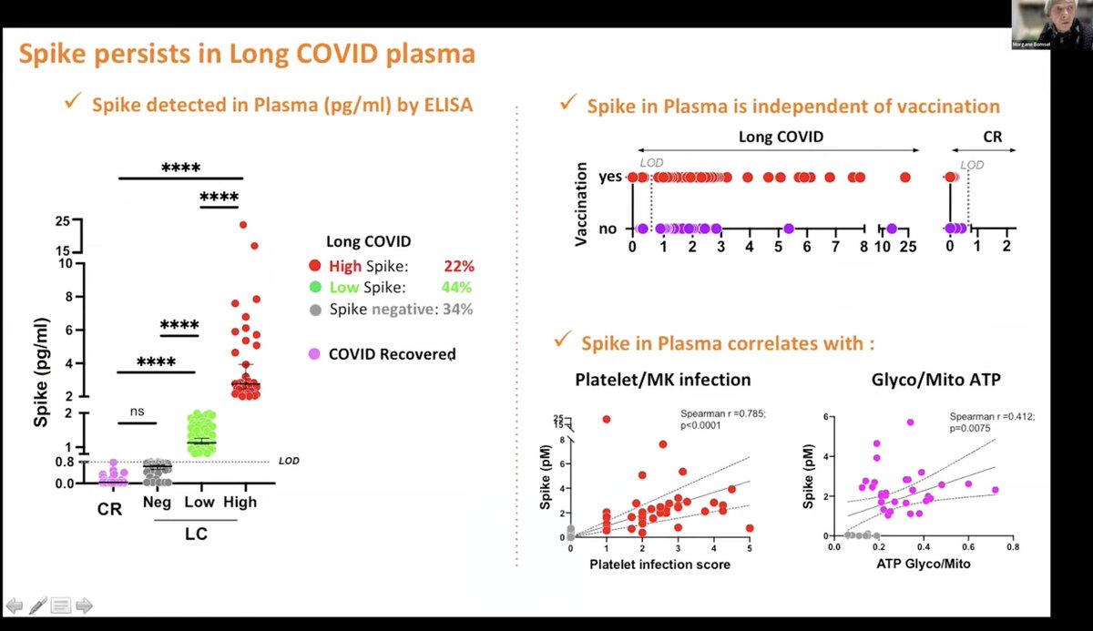 SARS-CoV-2 spike protein persists in the plasma of people with Long COVID, independent of vaccination.