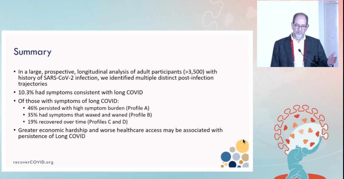Various sessions on how Long COVID impacts various cohorts and systems.