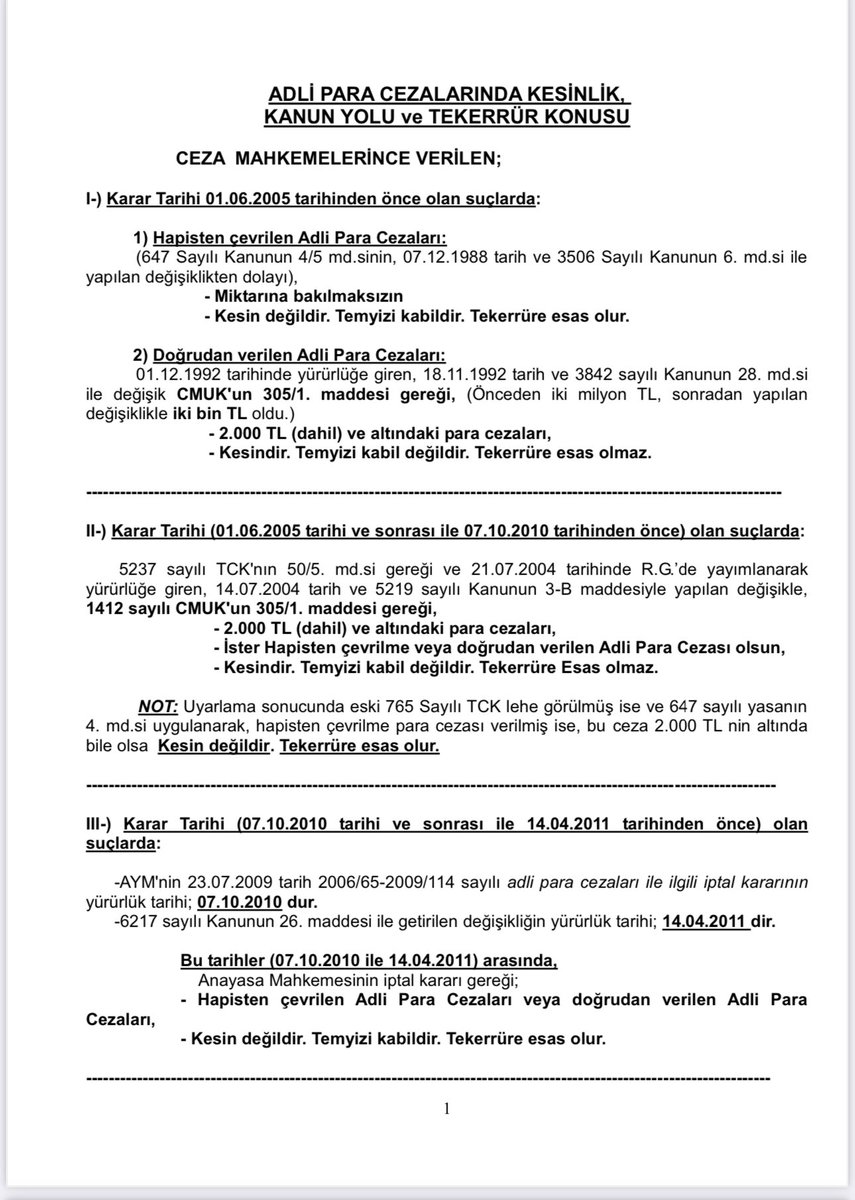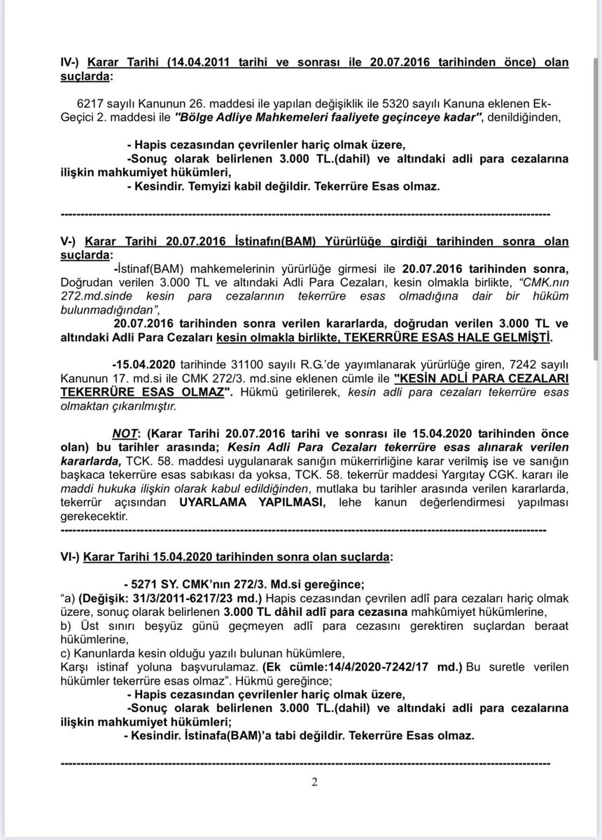 2-) Adli para cezalarında kesinlik sınırı tablosu