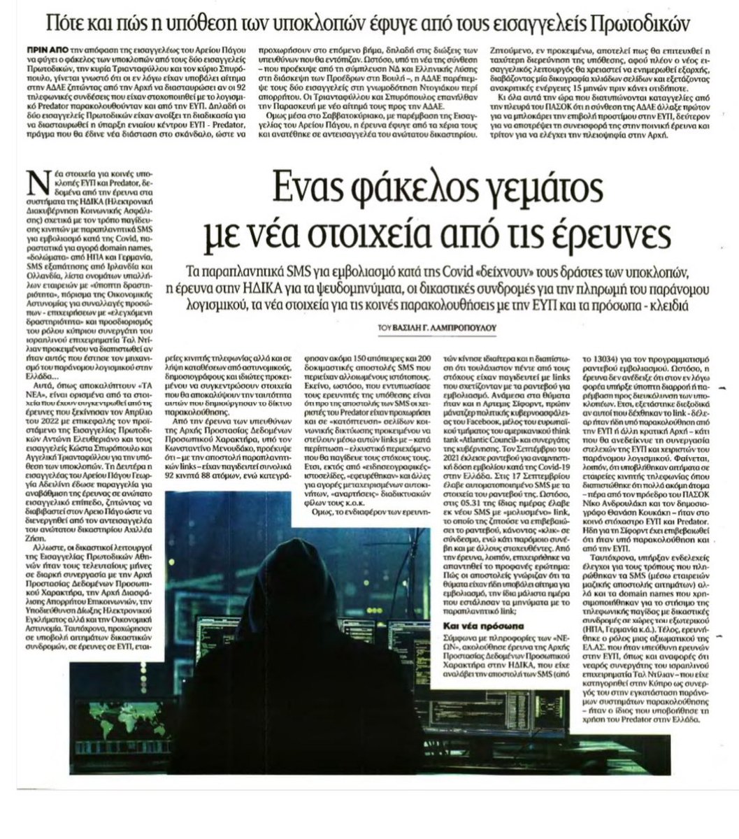 Part 2: Ο @VasLabropoulos (ΤΑ ΝΕΑ) αποκαλύπτει πτυχές της έρευνας Εισαγγελέων Πρωτοδικών για την υπόθεση των υποκλοπών με στοιχεία που δείχνουν πως οι παρακολουθήσεις Predator ΕΥΠ γίνονταν από το ίδιο κέντρο