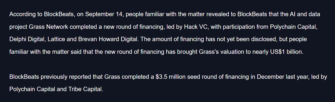II. The amount of Series A raise is not disclosed yet, but it is estimated to have brought @getgrass_io's valuation to ~$1B.