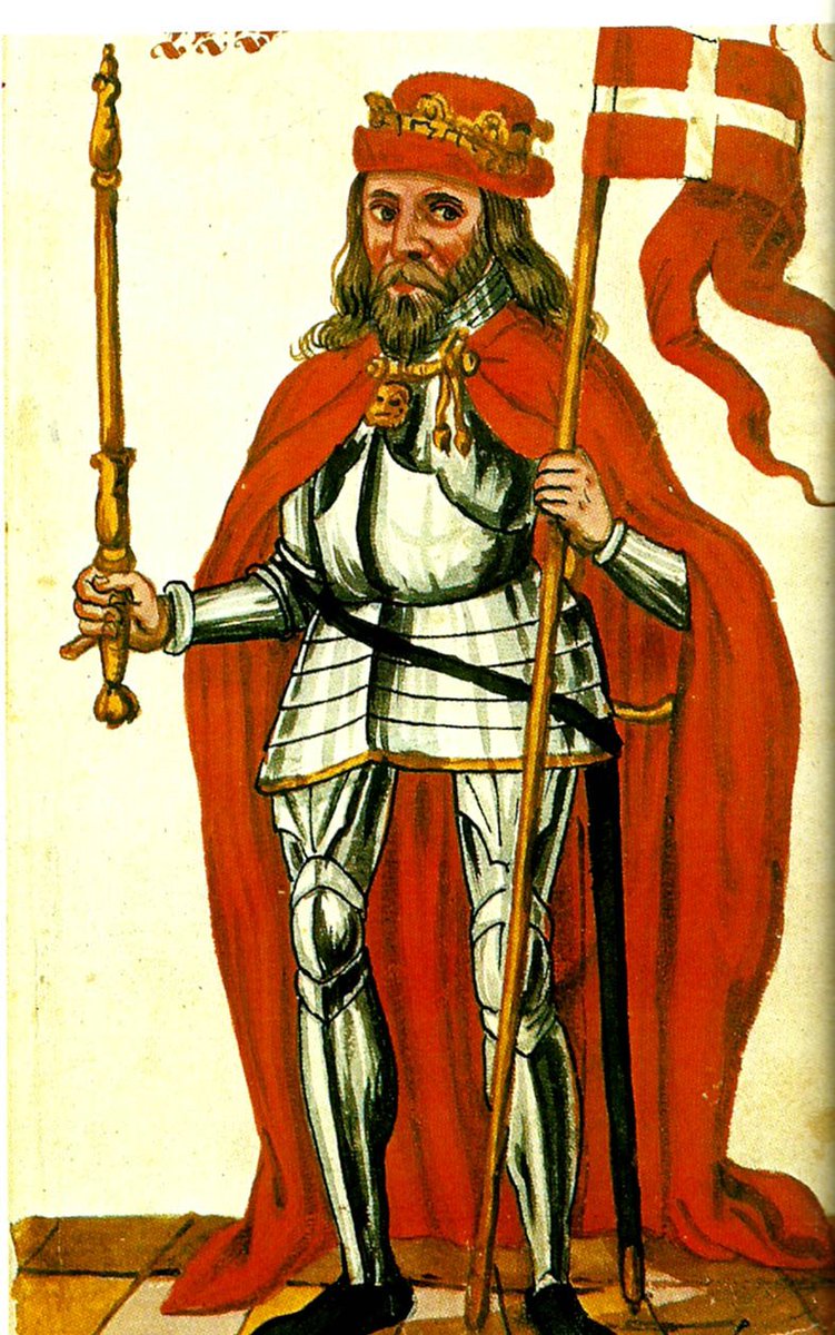 El rey danés en 1219 - Valdemar Sejr (Valdemar El Victorioso) - dirigió una cruzada a Estonia para convertir en cristianos a los paganos en la zona. En realidad la cruzada se trataba menos de religión y más para proteger intereses marítimos de Dinamarca en el Mar Báltico ⛵️🔱⚔️👑