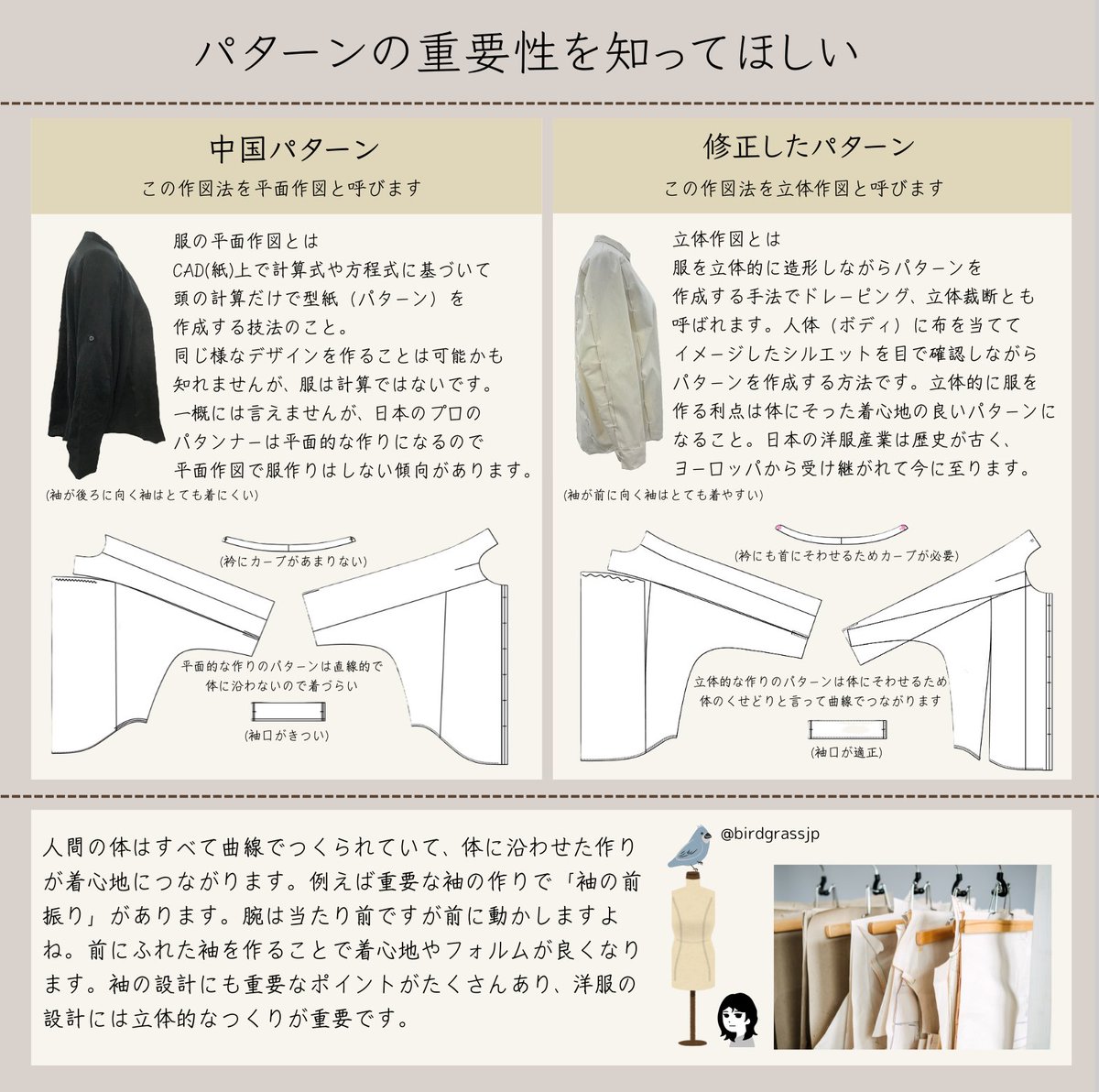 日本で服を生産していた時代は、今より「生地や設計」がしっかりしていて長持ちするし、縫製もきれいです。 一概には言えないけど少なからずみんな感じていると思う。