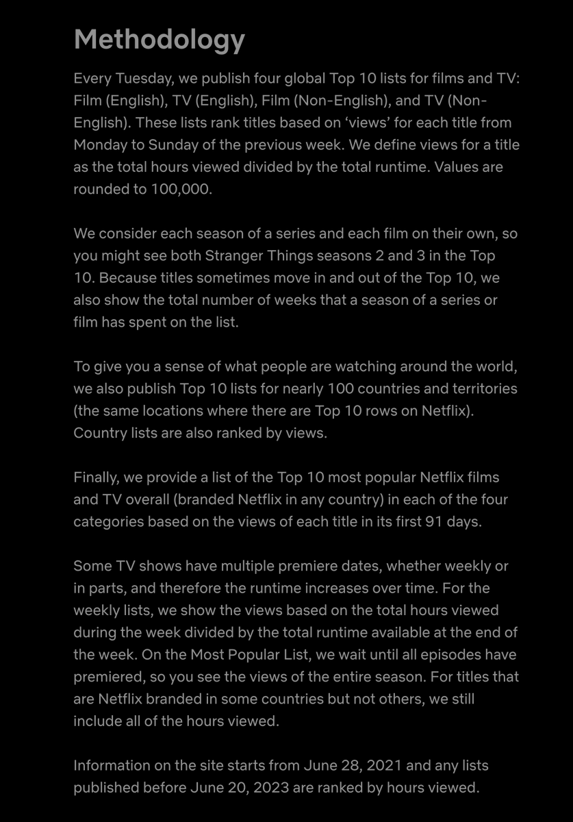 Netflix makes a surprisingly large amount of international viewing data public through its weekly Top 10 charts for films and TV shows for each country.
