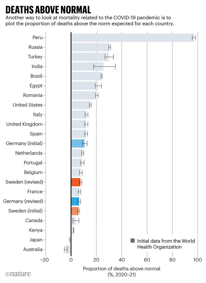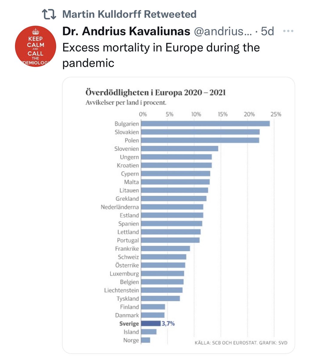 This should raise some eyebrows since Sweden has had several times more Covid deaths than its neighboring countries, yet there is a graph with the official sounding sources Eurostat and SCB (National Statistics Office of Sweden) claiming these left barely a mark on mortality? https://twitter.com/bjornpiltz/status/1493918683726495748