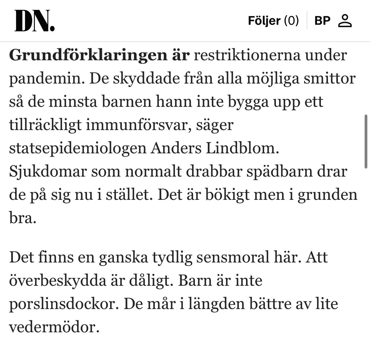Efter första vågen sammanfattade han utfallet i läkartidningen som:
