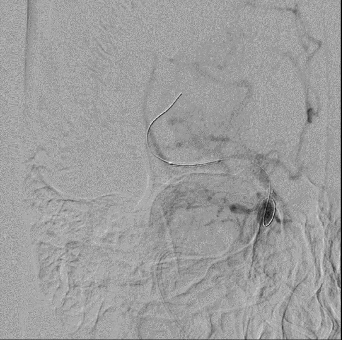 DSA also confirmed the extensive clot. In view of her recent LSCS 20 days ago, we were hesitant about giving IV lytics (urokinase infusion). Hence went in with an ACE 5 Max catheter and sucked out a mountain of clot