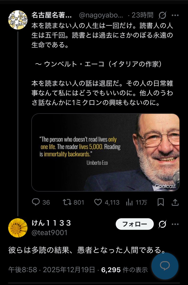 https://twitter.com/nagoyabookclub/status/2002170067958874293こちらのコメントに対する返信で、人間性が一発で露呈したように見えた。
