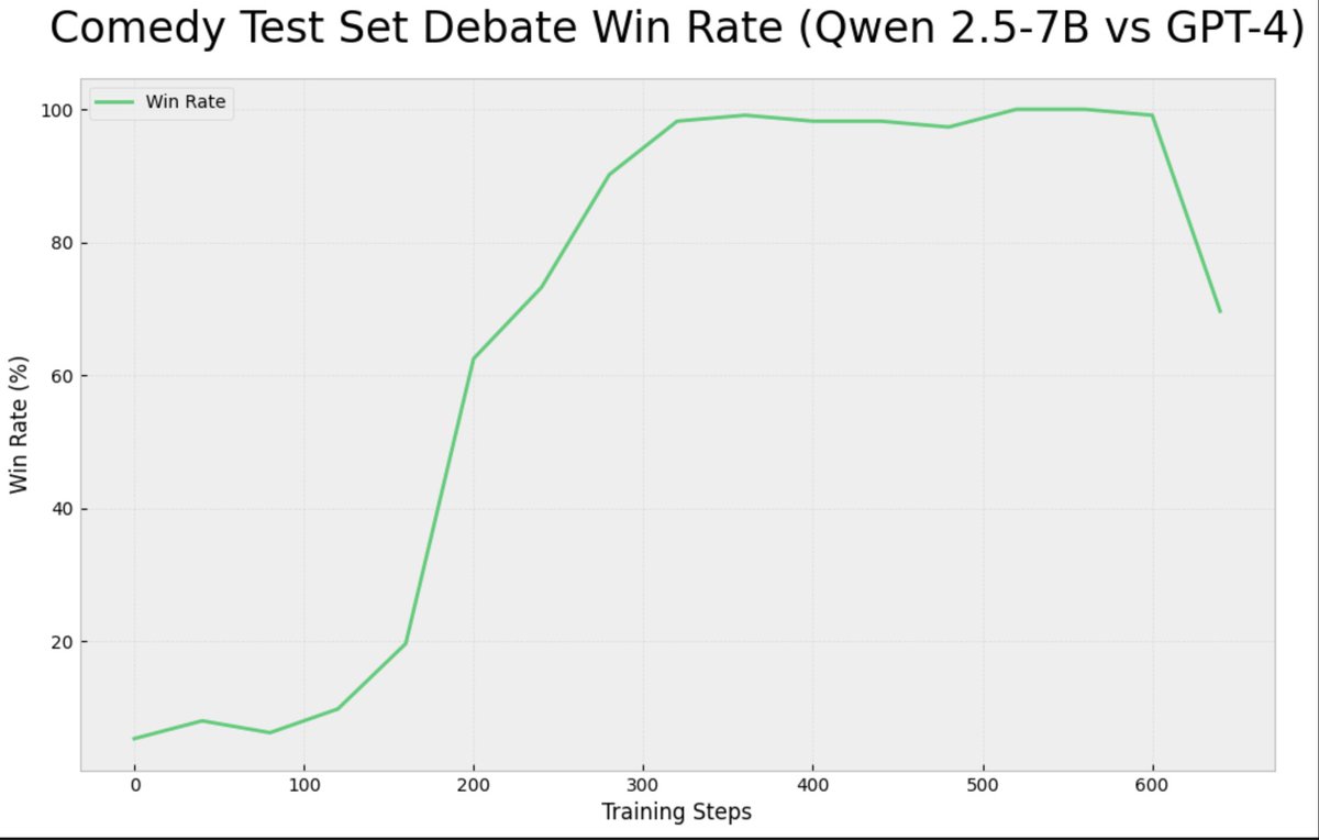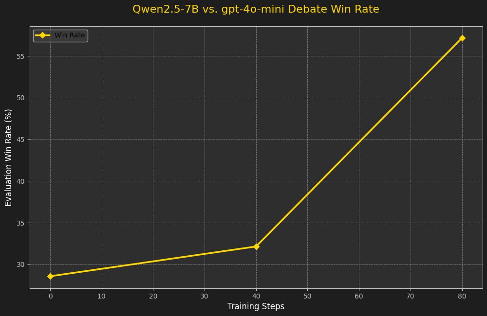 how it works: During training, the model generates multiple debate responses on the same topic. A judge (the base qwen2.5-1.5B model) LLM evaluates these against each other in a round-robin tournament, creating soft rewards that help the model learn which arguments work better. Github Code: (new branch)github.com/brendanhogan/D…