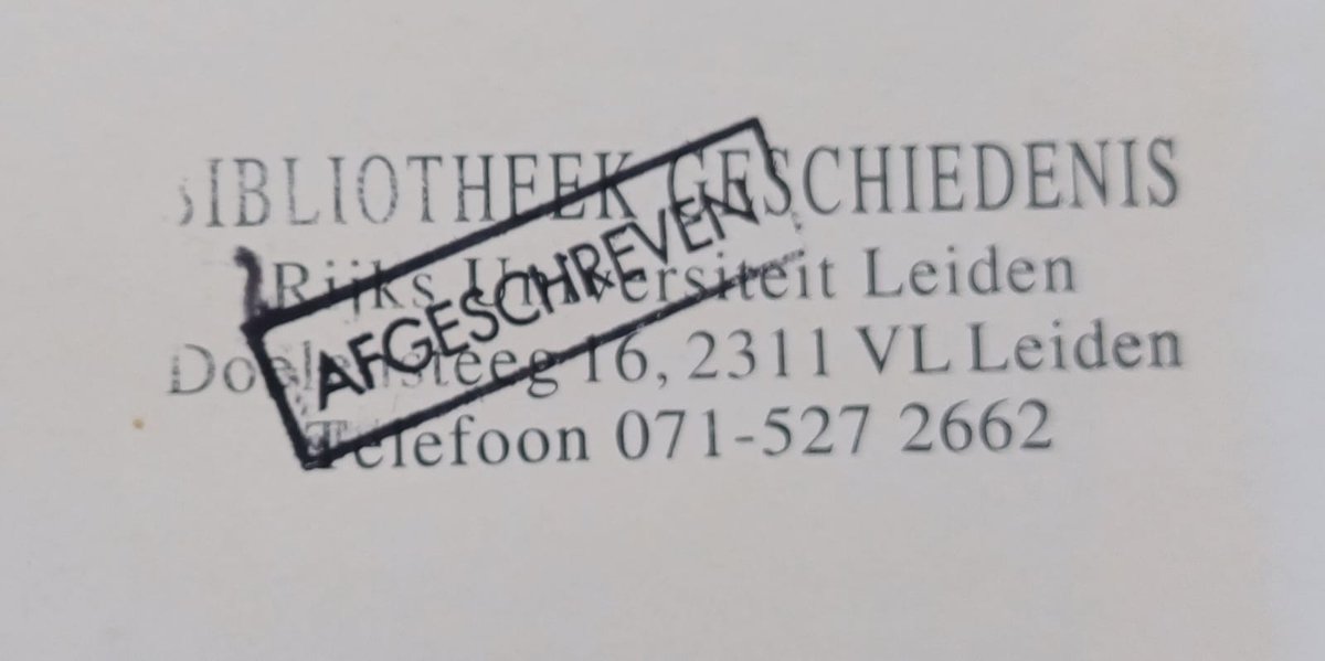 Eu comprei esse livro no Instituut voor Geschiedenis da Universiteit Leiden, por volta de 2009, quando a biblioteca setorial do instituto fechava as portas. Livros com exemplares repetidos na biblioteca central da universidade foram destinados a uma venda simbólica