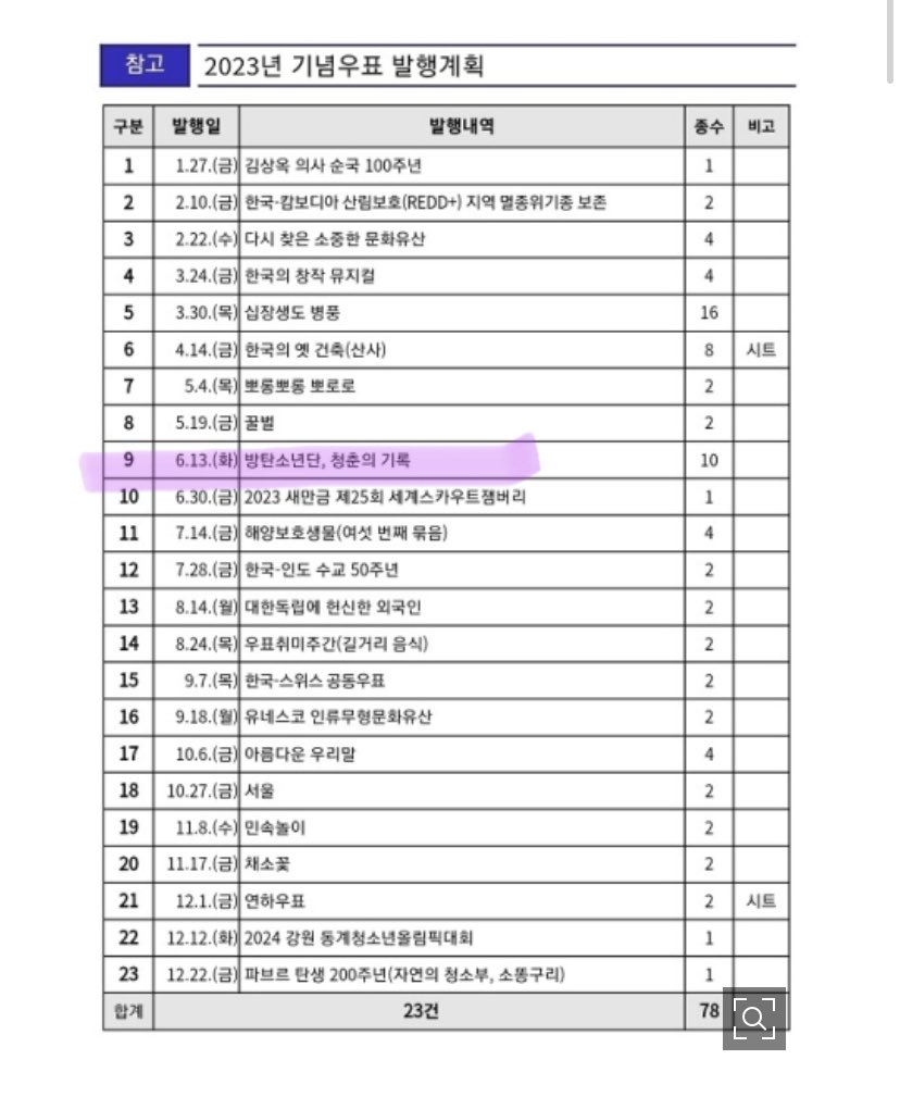 BTS commemorative stamps will be issued in the first half of next year (if it goes by the plan they released, on June 13). The theme of the stamps will be ‘Record of youth.’+