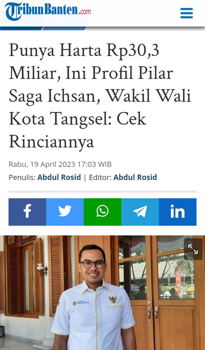 Kali ini gw mau ulas dari Kejanggalan harta Wakil Wali Kota Tangsel yg bernama "Pilar Saga Ichsan" yg terdeteksi memiliki harta 30,3 Milliar dalam catatan LHKPN.