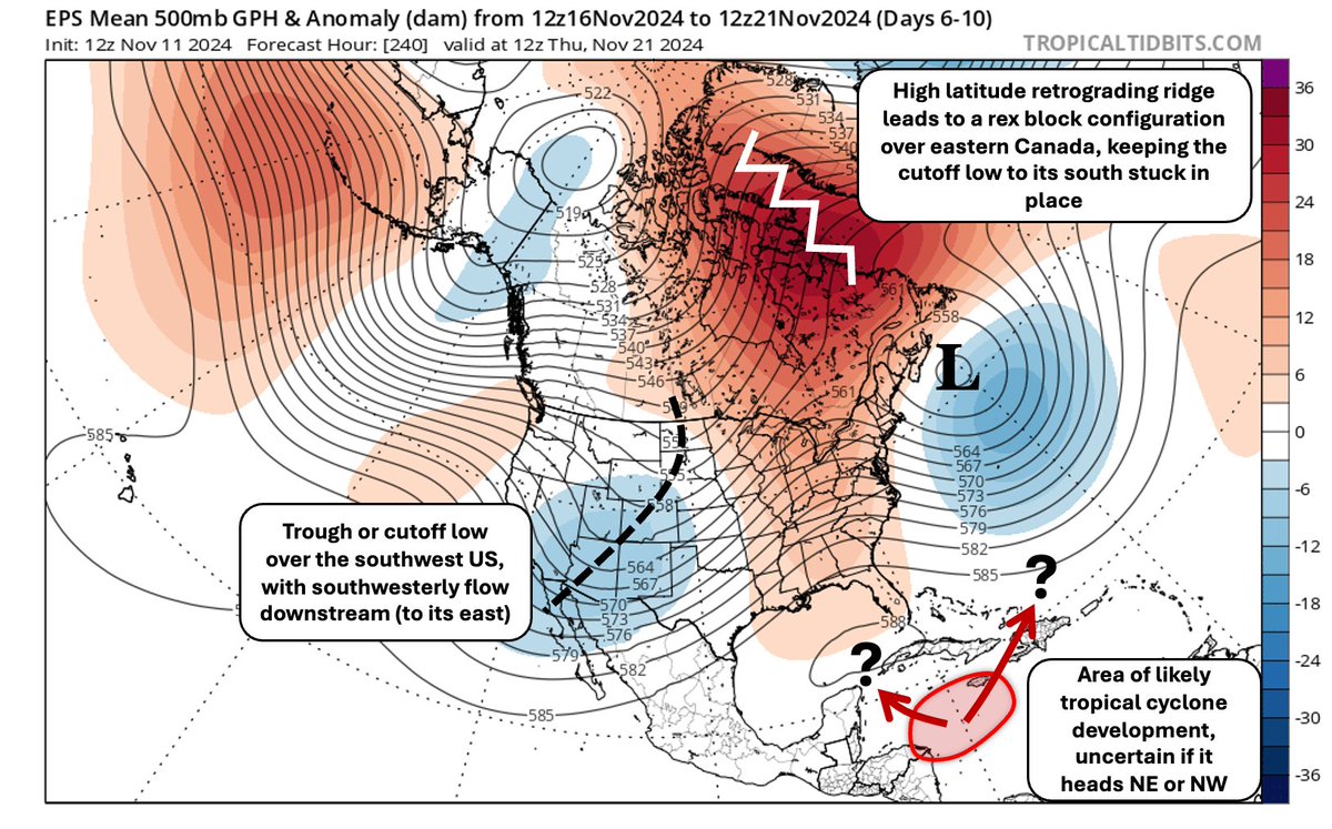 A notable feature & a precursor to potential CA tropical cyclone impacts is a massive ridge over the Plains.
