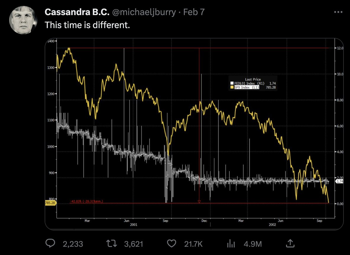 The chart compares the $SPY to the Fed Fund Rate during the Dot Com Bubble