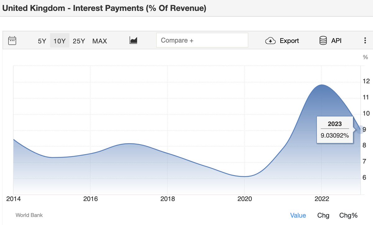 The UK’s annual interest payments on debt are already very high - over £100B a year