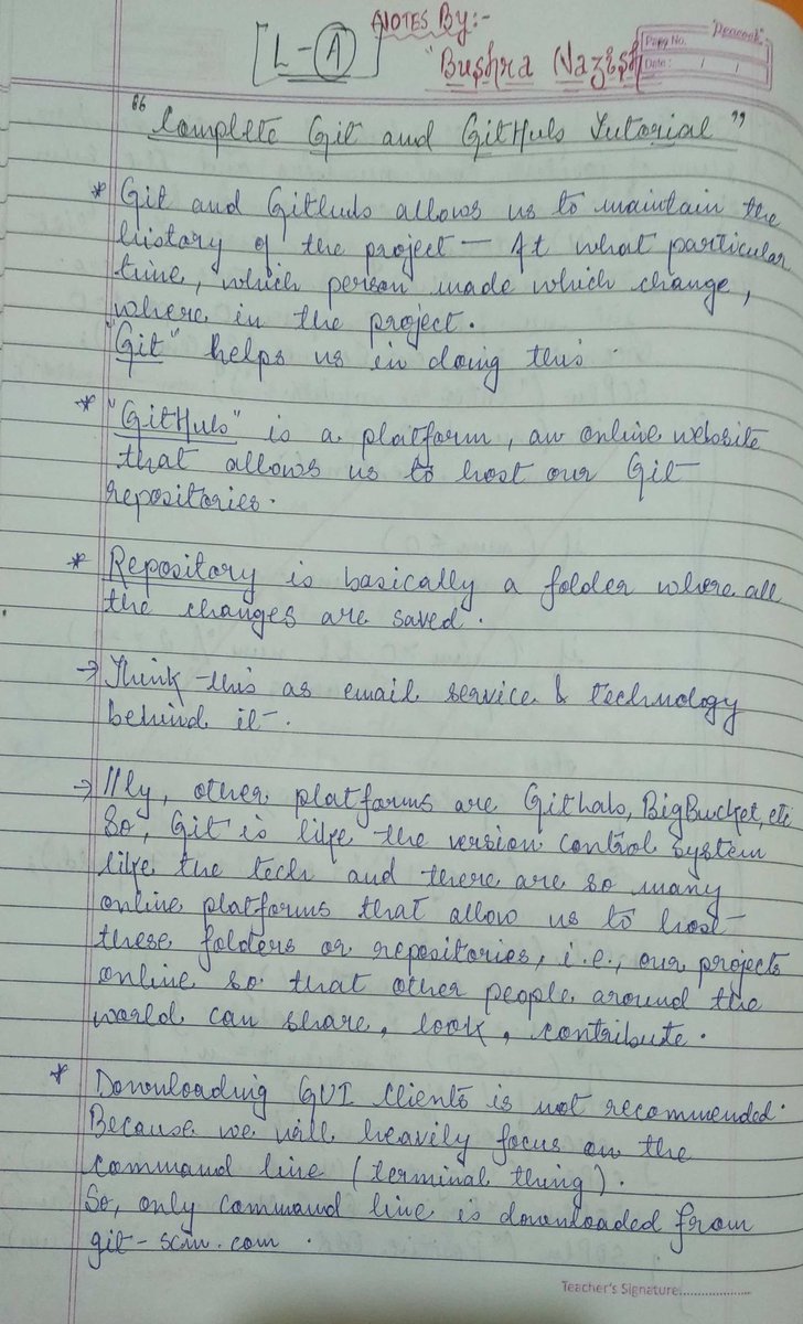 I have made hand written notes on 'Git & Github tutorial' video by @kunalstwt