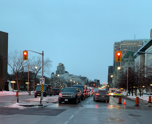 Only sound of horns was on Wellington in front of Parl Hill. Needless to say no enforcement by @OttawaPolice But hey that injunction by City that's right around the corner is sure to make a difference 🙄 2/