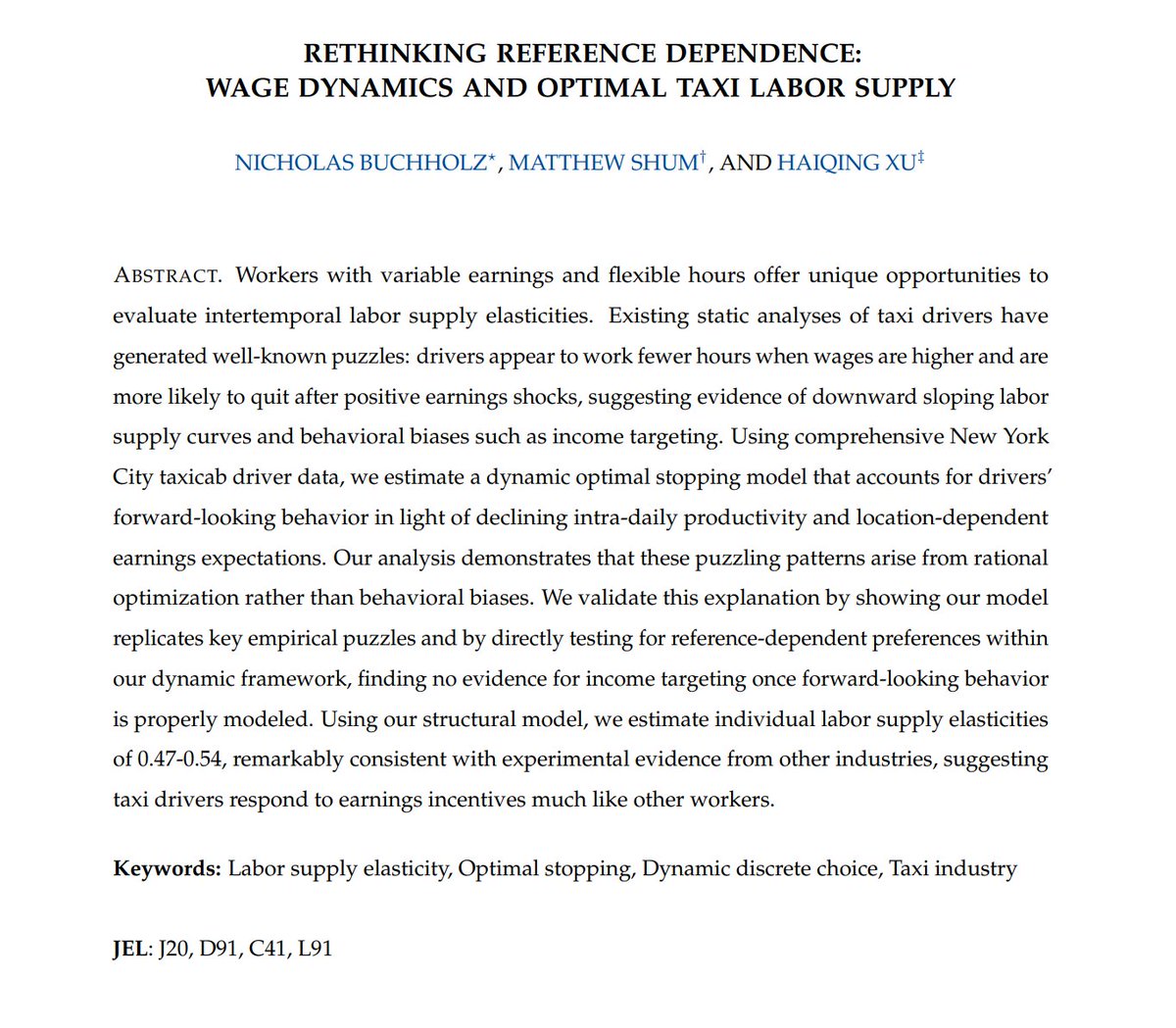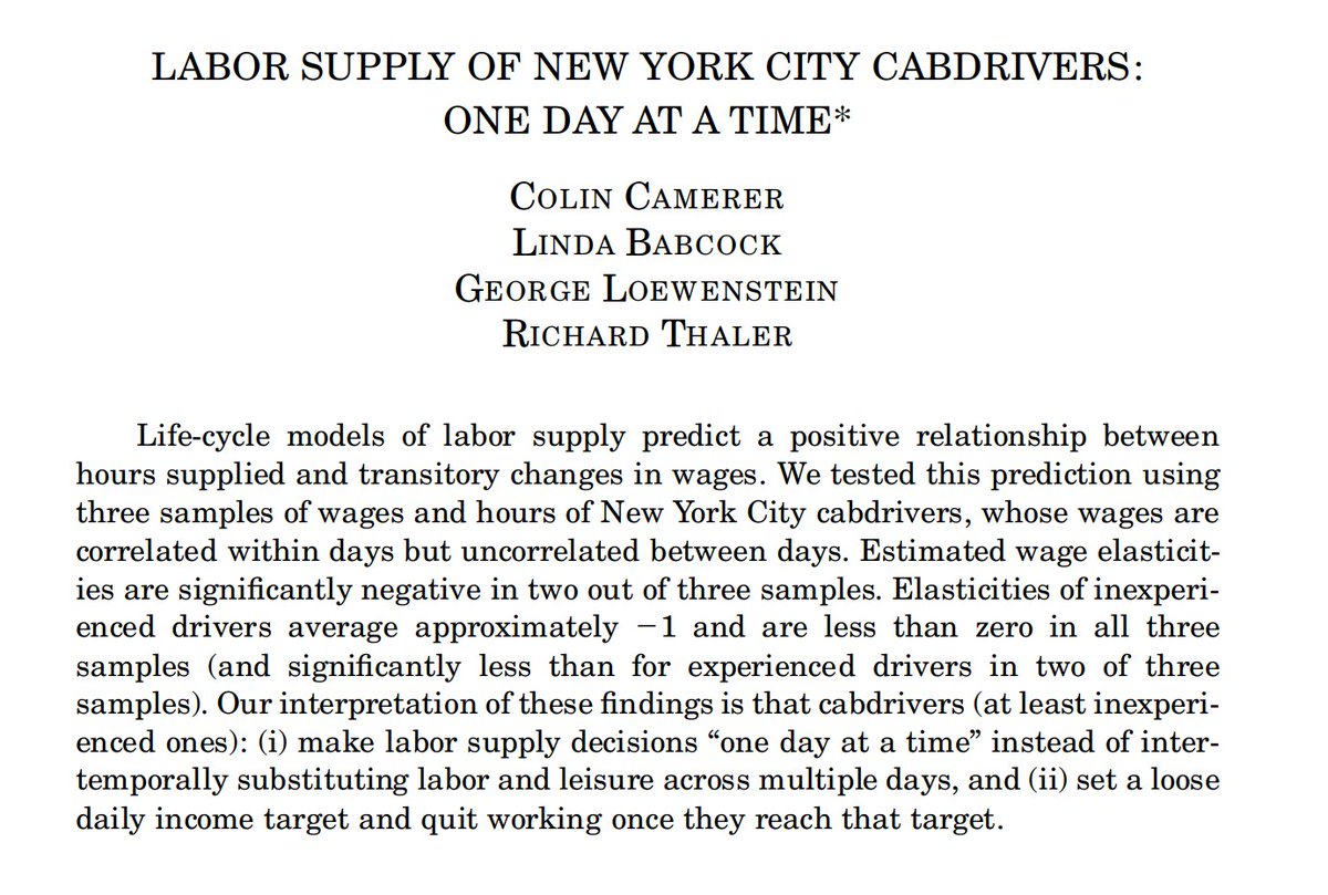 Back in 1997, a group of leading behavioral economists thought they had found that the elasticity of labor supply was negative, which would track best with workers choosing a target. If wages are unexpectedly high, then they will work less.