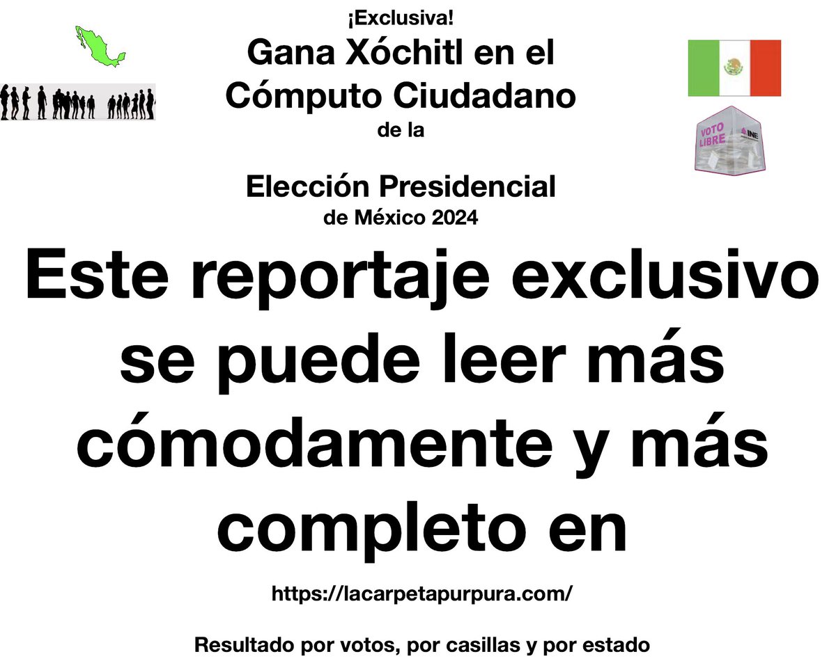en la pasada elección presidencial de México 2024, Xóchitl gana la elección con 26 millones 302 mil 401 votos, contra 25 millones 124 mil 815 votos de Claudia, es decir que Xóchitl gana por 177 mil 586 votos.