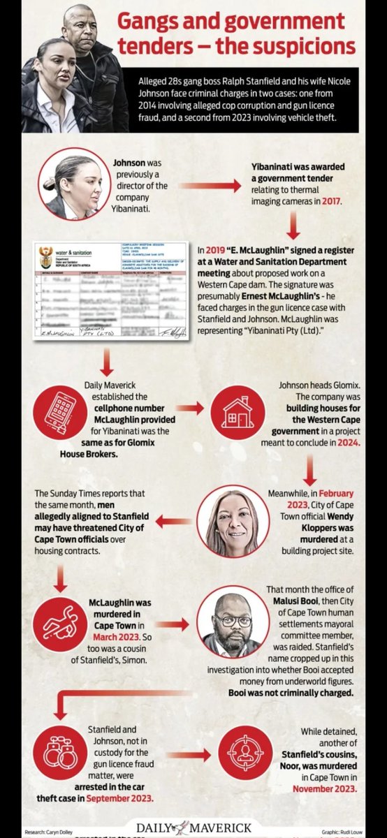 In 2023, I realised a signature on a gov department register could be that of a man who once faced charges with alleged #28s gang boss #RalphStanfield. That man was murdered in #CapeTown. Now, separately, an accused in the Malusi Booi/Stanfield tenders case was shot dead. A 🕸