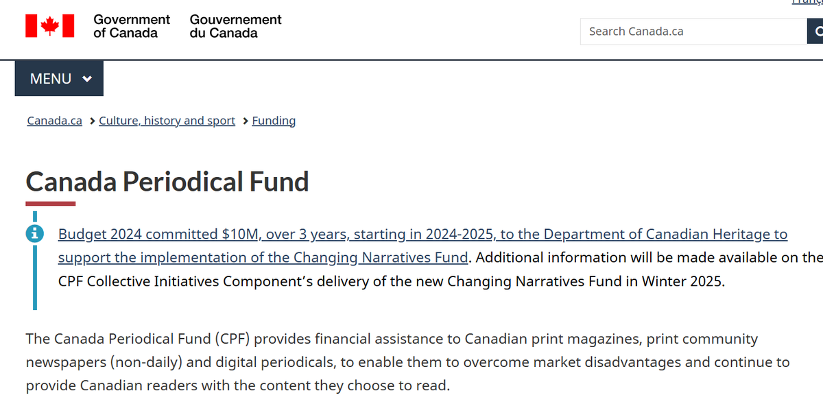 Purpose: Supports print magazines, non-daily newspapers, and digital periodicals with funding for content creation, distribution, and innovation.