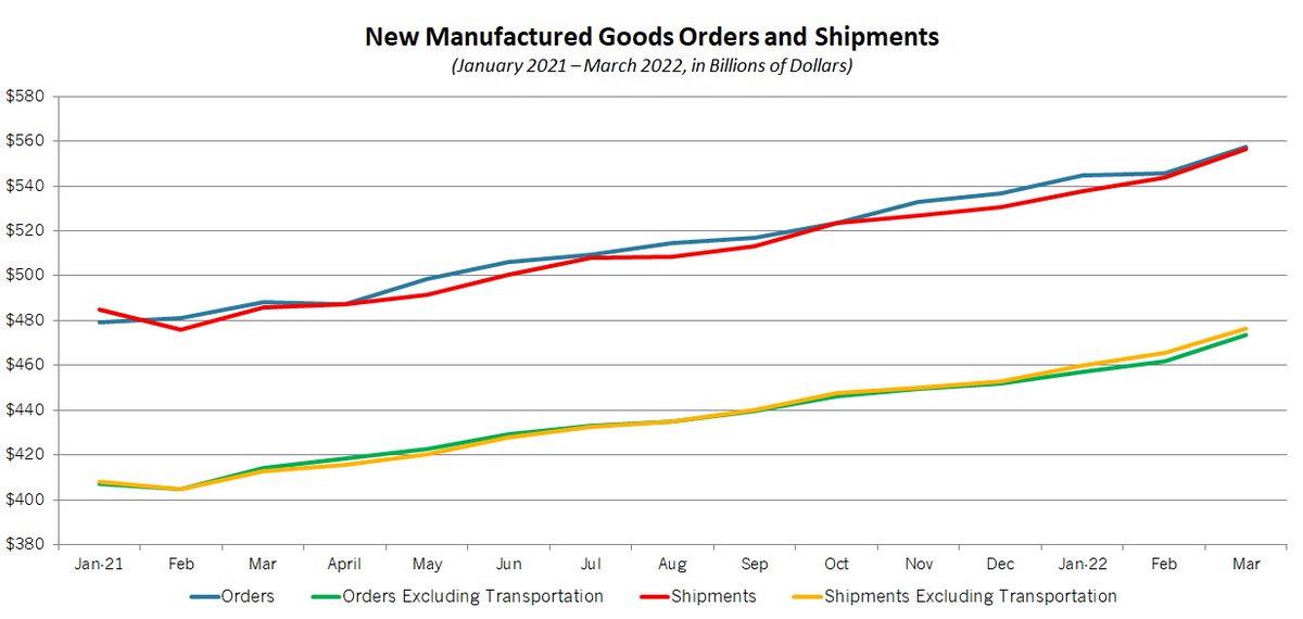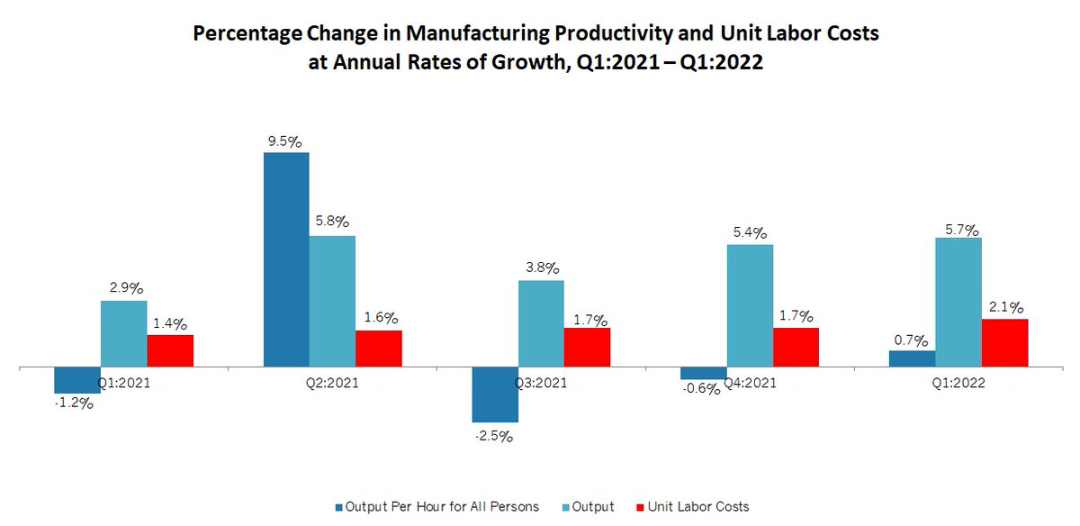 The output data continue to reflect solid growth in demand for goods despite ongoing challenges with supply chain and workforce issues. The number of hours worked rose 5.1% in the first quarter, with unit labor costs up 2.1%.