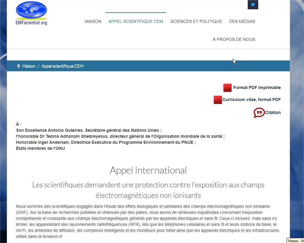 2017 : 170 scientifiques de 37 pays, recommandent un moratoire sur le déploiement de la 5G, contre ses effets potentiellement graves actu-environnement.com/media/pdf/news…1/n "La 5G va sensiblement augmenter l'exposition aux champs électromagnétiques radiofréquences (RF-EMF) en plus de la 2G, 3G, 4G, Wi-Fi, etc.