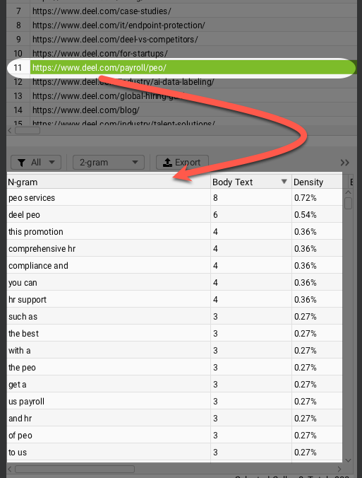 One little known aspect of Screaming Frog is that they released an N-Gram Analysis feature last year.
