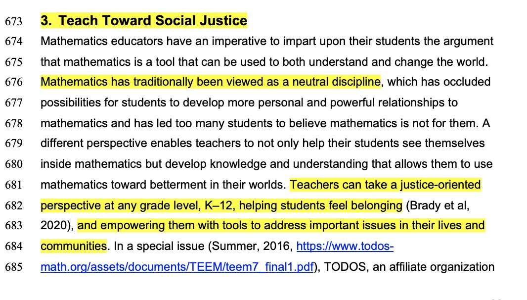 The guide claims that math was made for “privileged, young, white men” and that the belief that “I treat everyone the same” is “insufficient.”