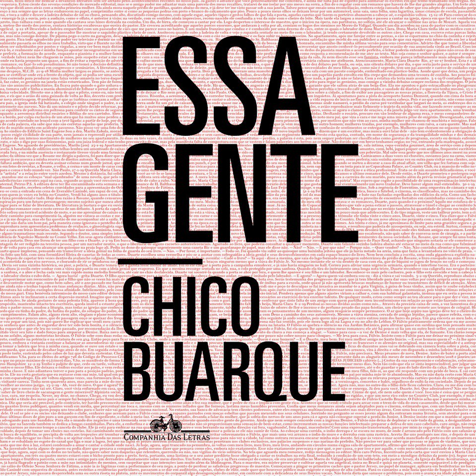 Há alguns pontos de contato entre Chico Buarque e o protagonista de “Essa gente”, seu primeiro livro após a consagração do prêmio Camões. O escritor Manuel Duarte tem esse sobrenome de perfil vocálico idêntico, e gosta de bater perna nos arredores do Leblon.