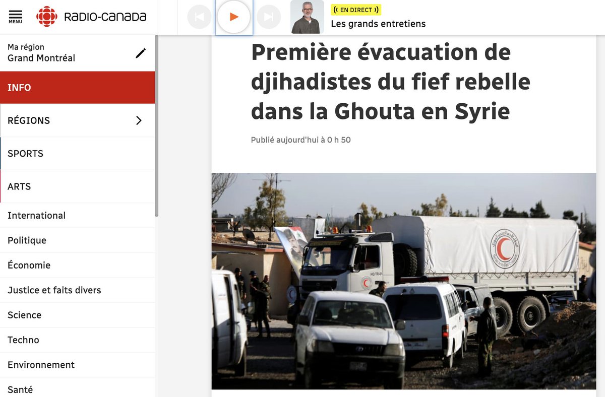 Radio Canada : "Premières évacuations de djihadistes du fief rebelle dans la Ghouta en Syrie"