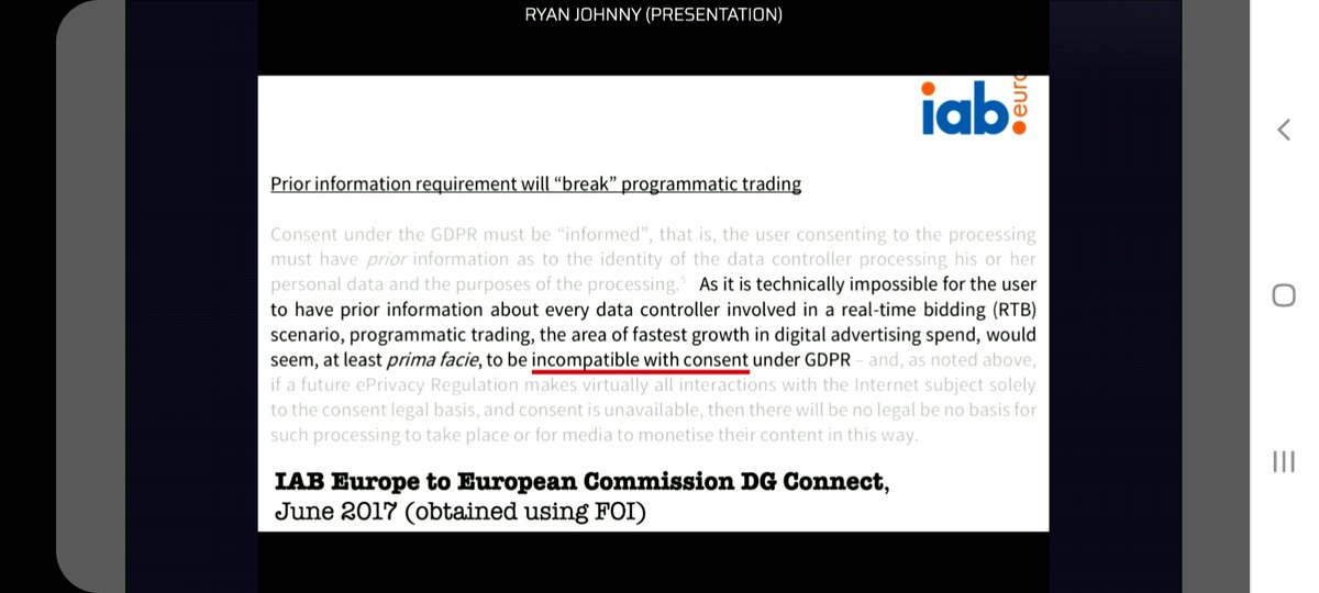 surveillance advertising as consent requires elements of transparency and control, made impossible by the opaque tracking industry and the multitude of parties receiving our data (≠informed consent). Thanks to @johnnyryan for also stressing this in last week’s IMCO hearing.2/8