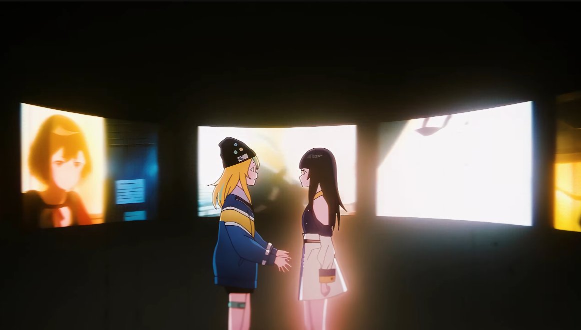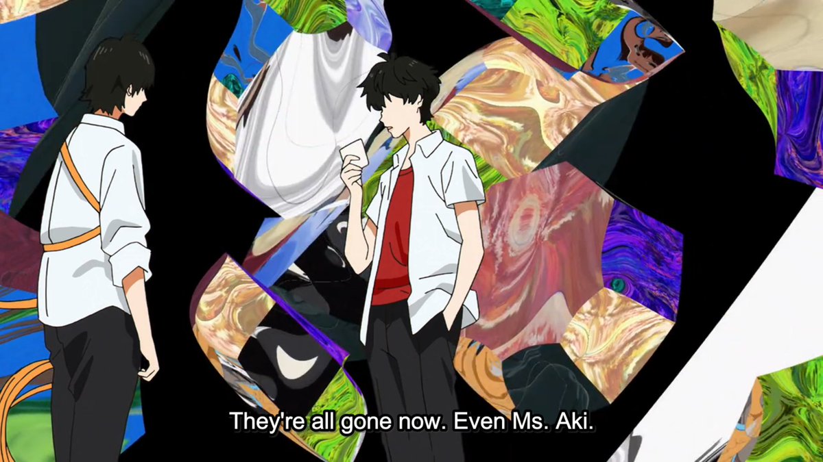 The way the digital world carries such a massive influence over them is woven into the OP - they're surrounded & trapped by screens rotating around them as they appear lost in the chaos, portraying their complex relationship with reality, which is visualized by their past selves.