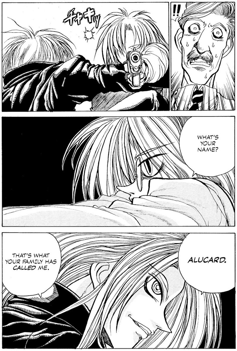 This single line strengthens this chapter's conclusion. Alucard is the first to ever call her Sir, a knight's title. While he does help her, she delivers the final blow.
