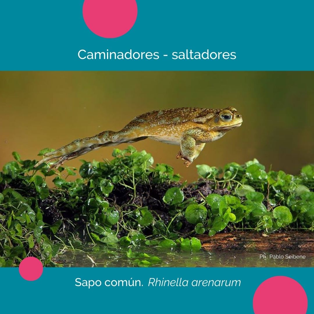 Terrestres y caminadores-saltadores. Son los que utilizan sus 4 patas para trasladarse sobre el suelo, la hojarasca o las rocas. Los sapos, las salamandras y los escuerzos se desplazan de esta manera.