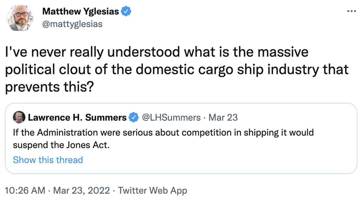 https://twitter.com/ibackalov/status/1571757193359155200Just to stay on brand, there are none of these heavy lift ships in the Jones Act fleet: sgp.fas.org/crs/misc/R4572…