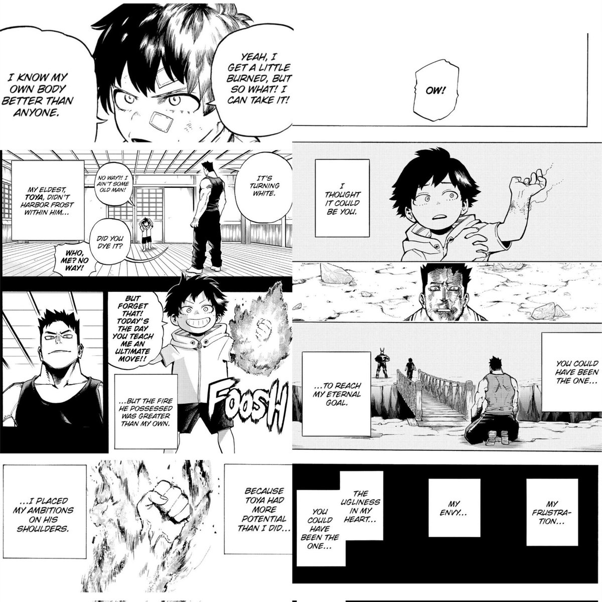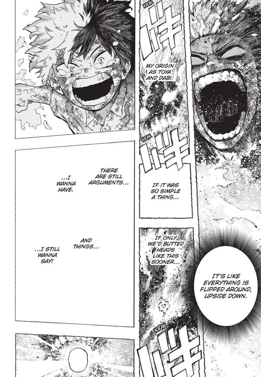 And now as an adult we have him breaking crying literal blood - then Shoto touching his heart dragging him out of his tomb and Toya lashing out and in the end Shoto finally reaching him and making him want to face himself, reality ,his family and Life itself.. he was crying ice