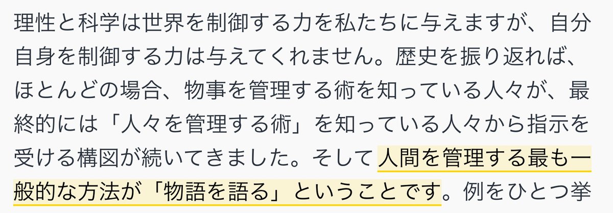 人間を管理する最も一般的な方法が「物語を語る」ということです。