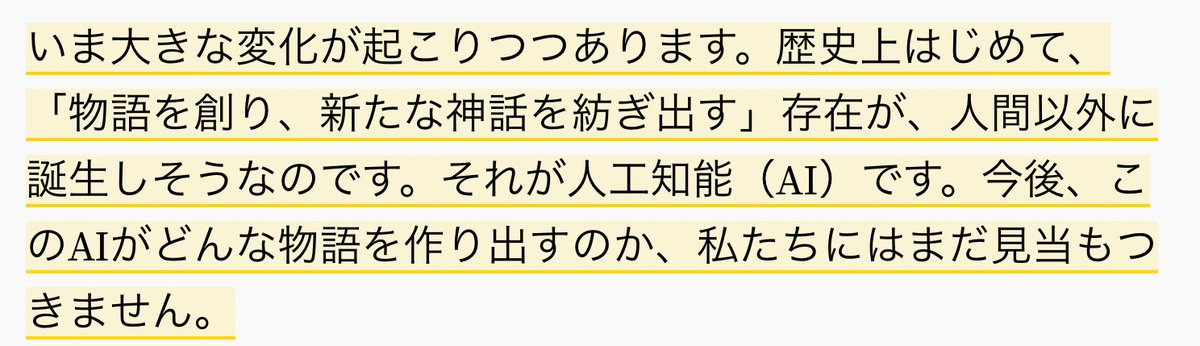 いま大きな変化が起こりつつあります。歴史上はじめて、「物語を創り、新たな神話を紡ぎ出す」存在が、人間以外に誕生しそうなのです。それが人工知能(AI)です。今後、このAIがどんな物語を作り出すのか、私たちにはまだ見当もつきません。