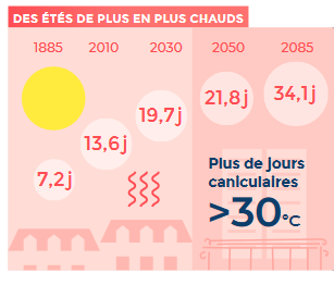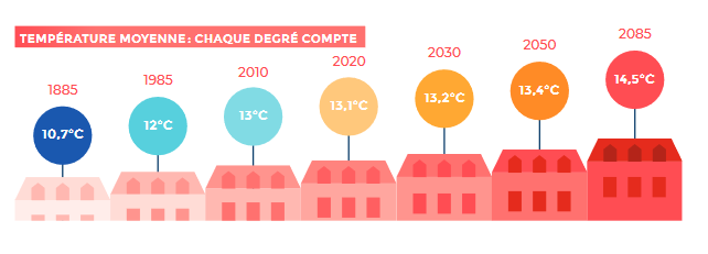 Le dérèglement climatique est déjà là. À Paris, on estime que la température moyenne a déjà grimpé de +2,3°C. Ça implique des vagues de chaleur plus intenses, plus fréquentes et plus longues.