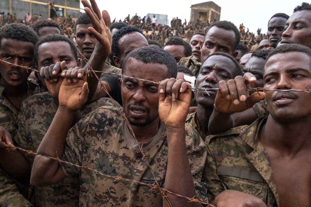 An Ethiopian prisoner of war camp at Adi Isher, 30 miles south of Mekelle. The soldiers had been captured a few days earlier, after heavy fighting, and their faces were clouded with so much: resignation, resentment, fear, fury. Clearly a huge loss for Ethiopia's military.