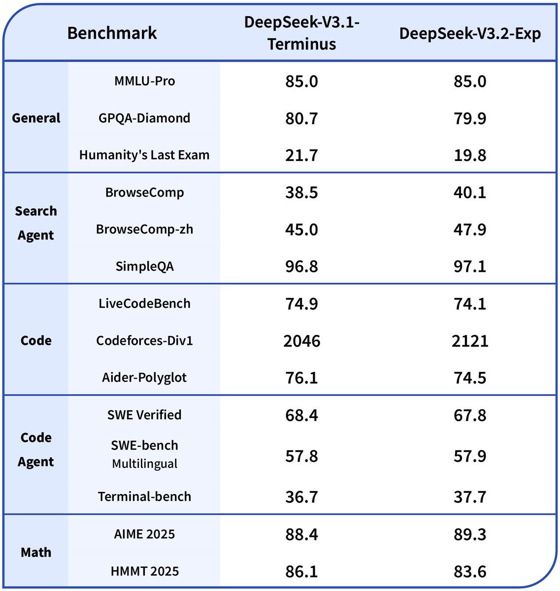 π Benchmarks show V3.2-Exp performs on par with V3.1-Terminus.