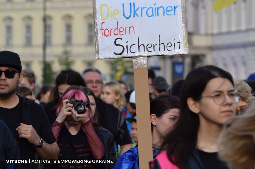 Over het incident gisteren: de daders zijn, voortvluchtig, hun motief onbekend. Maar dat Oekraïners zich al langer niet veilig voelen in 🇩🇪, is een feit. Op 3 mei gingen in Berlijn honderden Oekraïners de straat op om aandacht te vragen voor hun veiligheid. 2/15