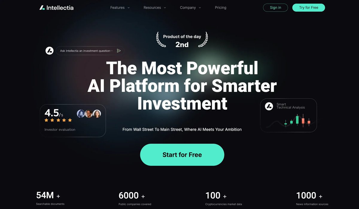 1. 💰Intellectia - The Top AI Investment Platform, Where AI Matches Your Goals! AI Stock Picker: Get the best daily stocks chosen by AI for day trading!