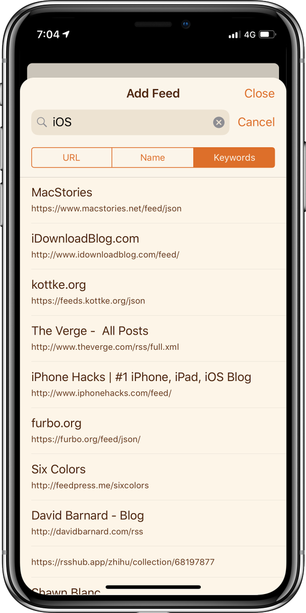 New Elytra build is up on TestFlight which brings a new interface for adding new Feeds or search for existing ones based on title and keyword matching.